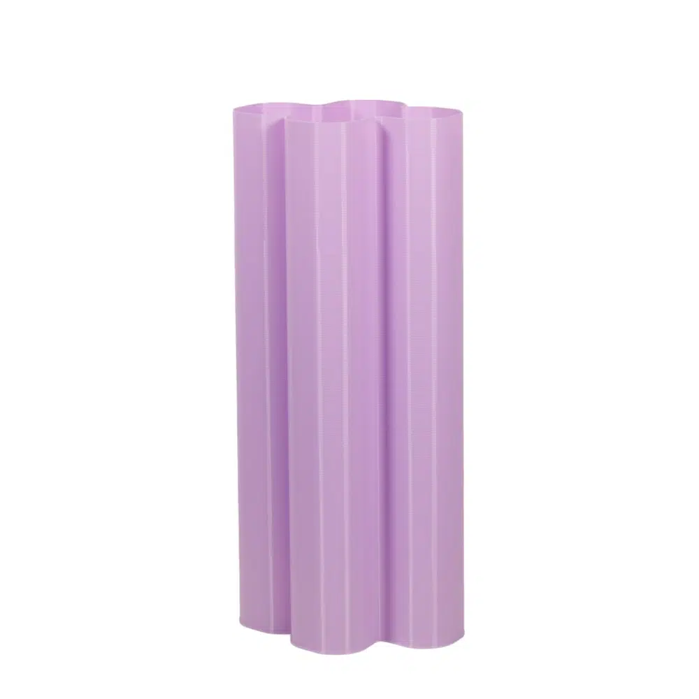 Deze vaas wordt gemaakt van gerecyclede plastic flessen en verpakkingen van etenswaren. In de studio van Warren & Laetitia is de speelse set vazen ontwikkeld in de maten S, M, L en XL, in een reeks vrolijke kleuren. Ga jij voor een combinatie van kleuren of hou je het liever monochroom?