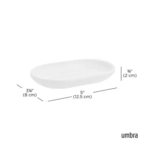 Zeepbakje Touch van Umbra. Verkrijgbaar in verschillende kleuren. Materiaal: kunststof. Afmetingen: 13 x 9 x 2 cm.