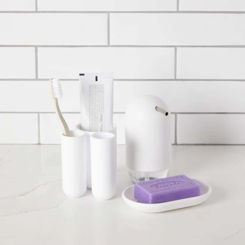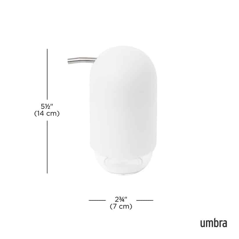 Dit zeeppompje van Umbra uit de Touch serie siert zich door eenvoud en de mooie ronde vomen. Door op de zeeppomp te drukken komt er zeep uit het tuitje. De onderkant kan los worden gedraaid om te vullen. Verkrijgbaar in verschillende kleuren.